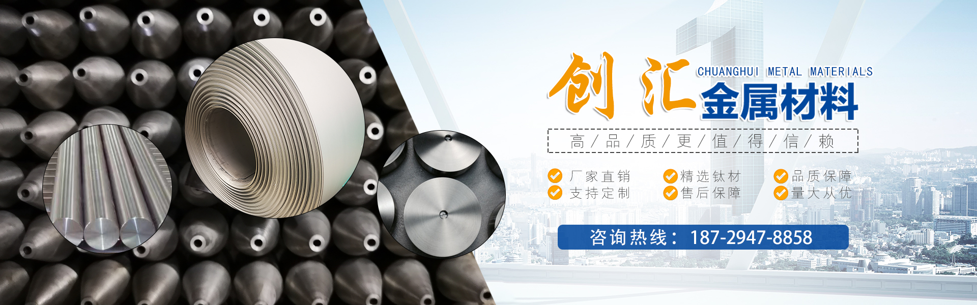 寶雞市創(chuàng)匯金屬材料有限公司,位于有“中國鈦谷”之稱寶雞寶鈦路南段,這里也是國家重點(diǎn)支持和扶持的有色金屬材料資源產(chǎn)業(yè)基地,我司專業(yè)從事鈦、鋯、鉿、鎳鉻、鎢鉬、鉭鈮、合金材料、復(fù)合材料,板、棒、絲、管、箔材等,設(shè)備制造,金屬制品機(jī)械加工銷售。